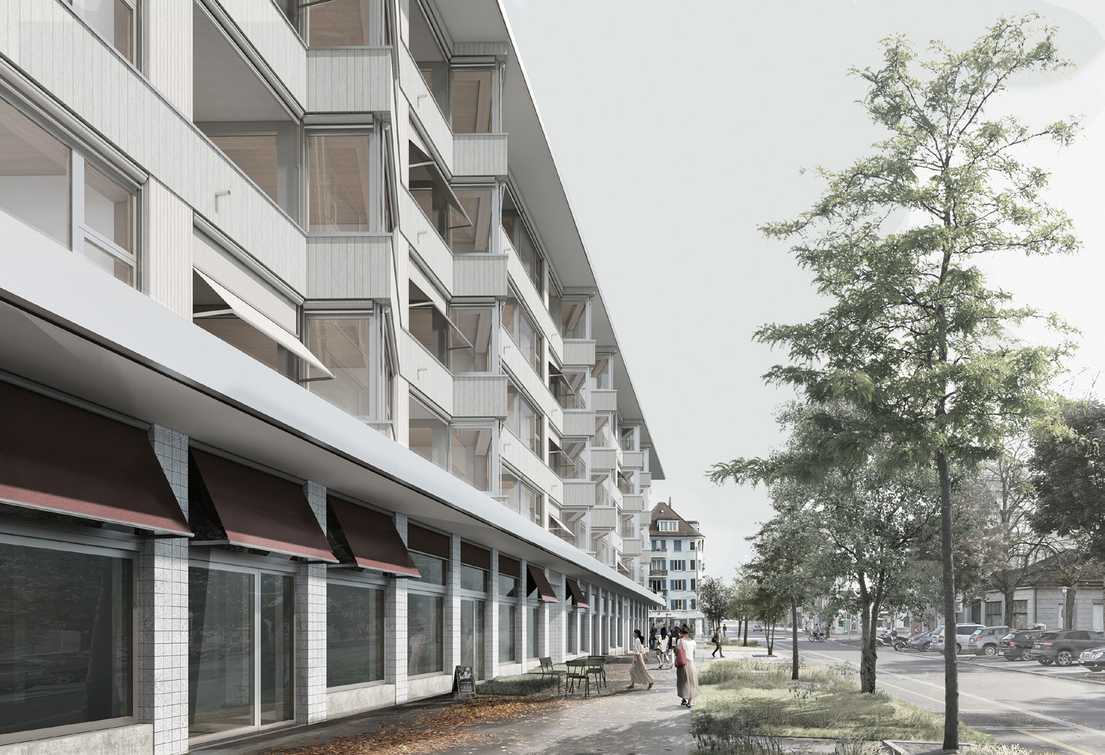 Umnutzung und Entwicklung bestehendes Betriebsareal an der Badenerstrassein Zürich mit dem Neubau von 172 Wohnungen, Büro-und Geschäftsflächen in Holzbauweise sowie Sanierung und Umnutzung des inventarisierten Hochhauses.